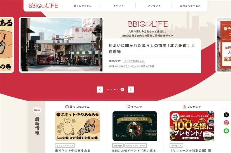 九州に特化した光インターネットサービス「BBIQ」を提供する株式会社QTnetが、会員向けのオウンドメディア「BBIQ LIFE」をリニューアルしました。このリニューアルでは、九州の生活をより便利で快適にする情報が充実しています。