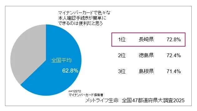 長崎県民の大多数が、マイナンバーカードを用いた本人確認の手続きの簡易さに大きな期待を寄せています。実施された調査によると、72.1%の県民が「マイナンバーカードで簡単に本人確認できるのは便利」と回答し、全国平均を大きく上回る結果となりました。この背景には、2025年12月以降、マイナンバーカードが健康保険証としても使用可能になるという機能の拡大が影響しています。長崎県民の利便性向上に対する期待は全国でもトップクラスであり、特に「機能が集約されることは好ましい」と考える人が60.3%に達しています。
